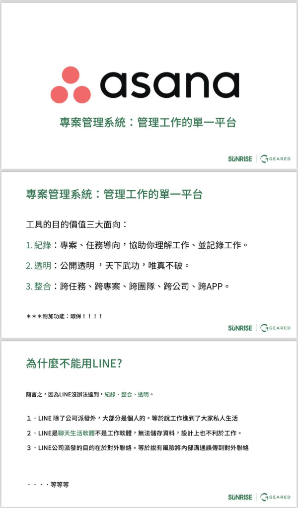 3. 整合:跨專案、跨部門、跨APP、跨團隊,甚至未來跨公司都可以在同一平台上作業