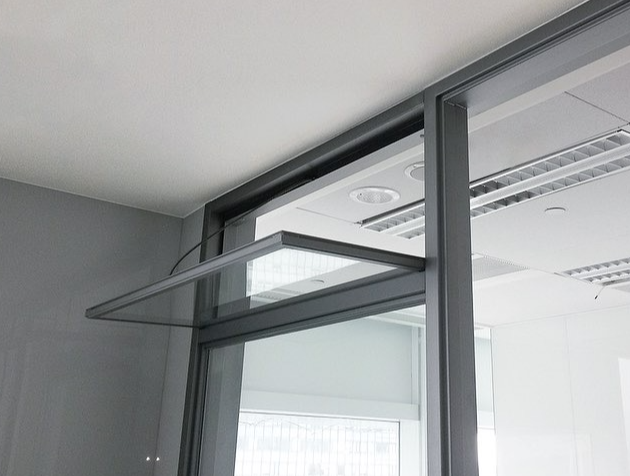 開窗器與窗扇為垂直拉力作動,並搭配隔間所需隔音材料的使用確保最大還原隔間本身之隔音性等級。安全性