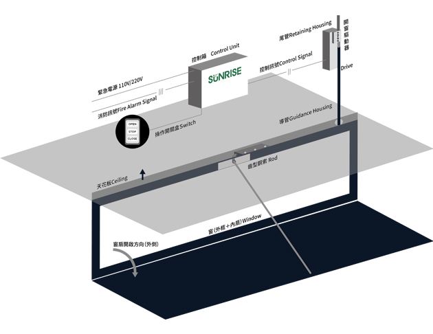 齒型鋼索 - 單開排煙倒窗系統